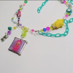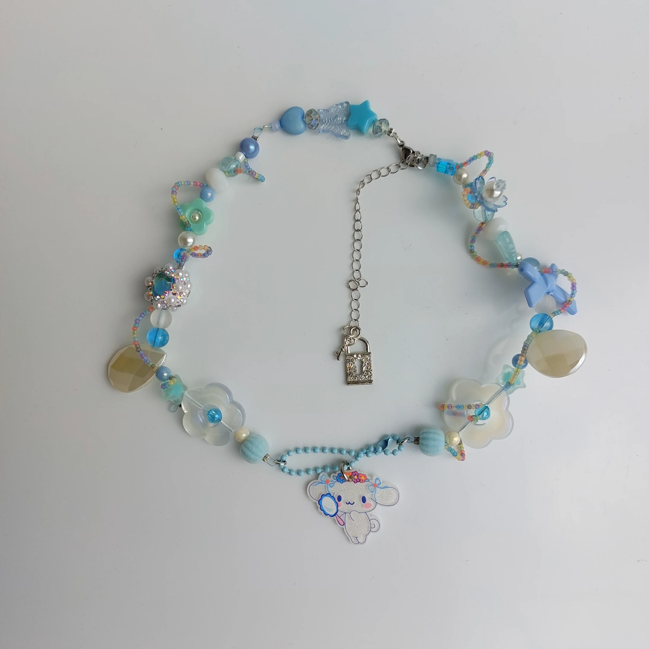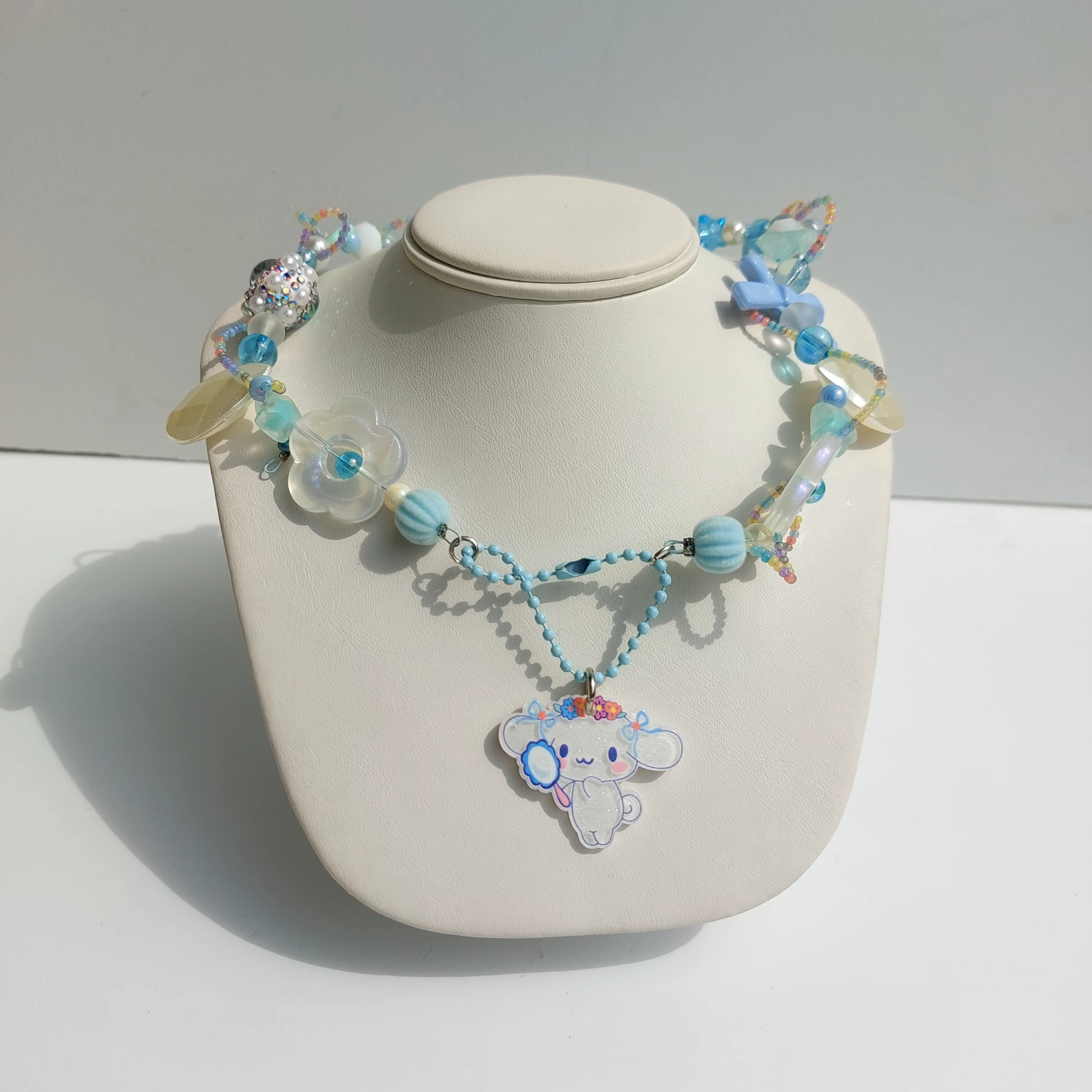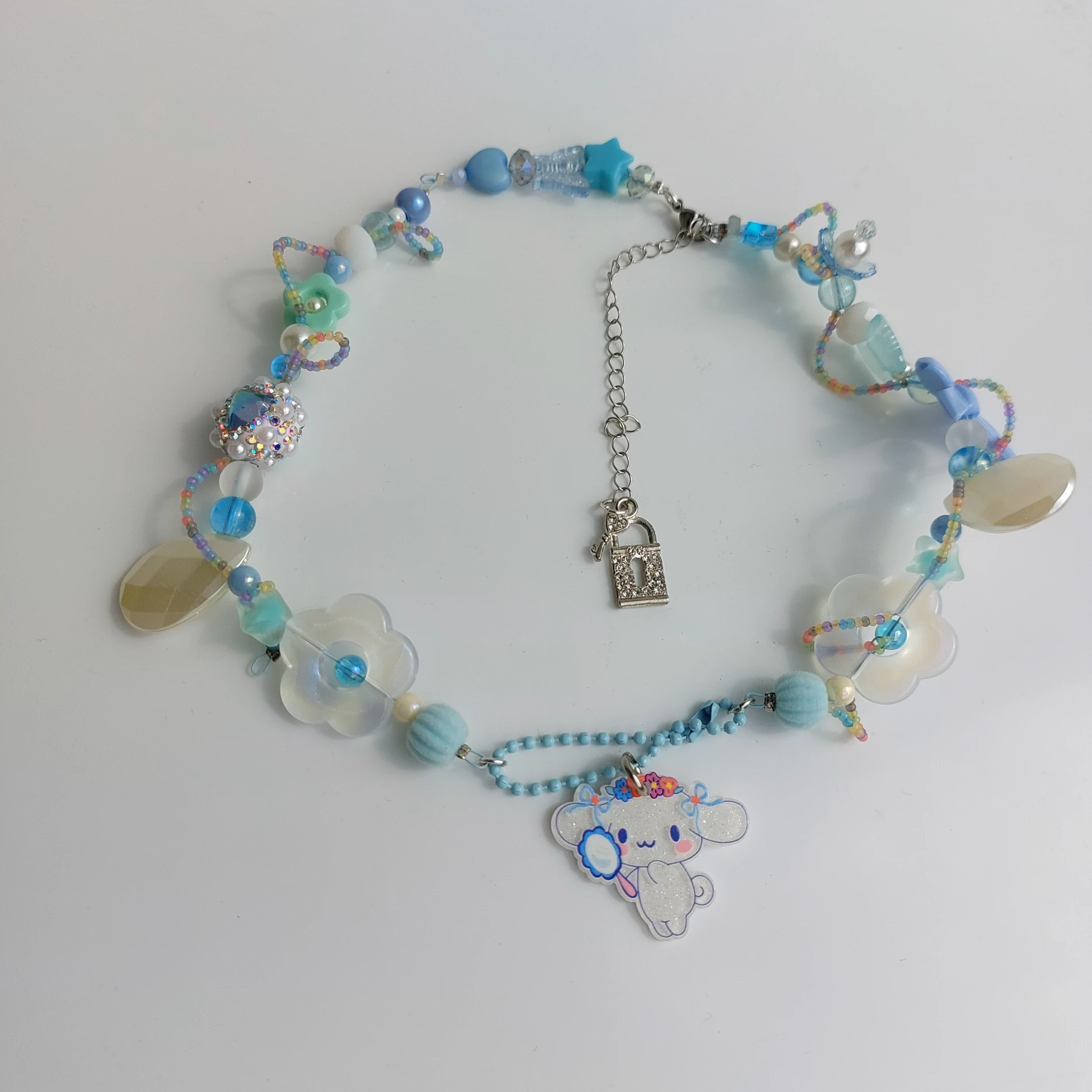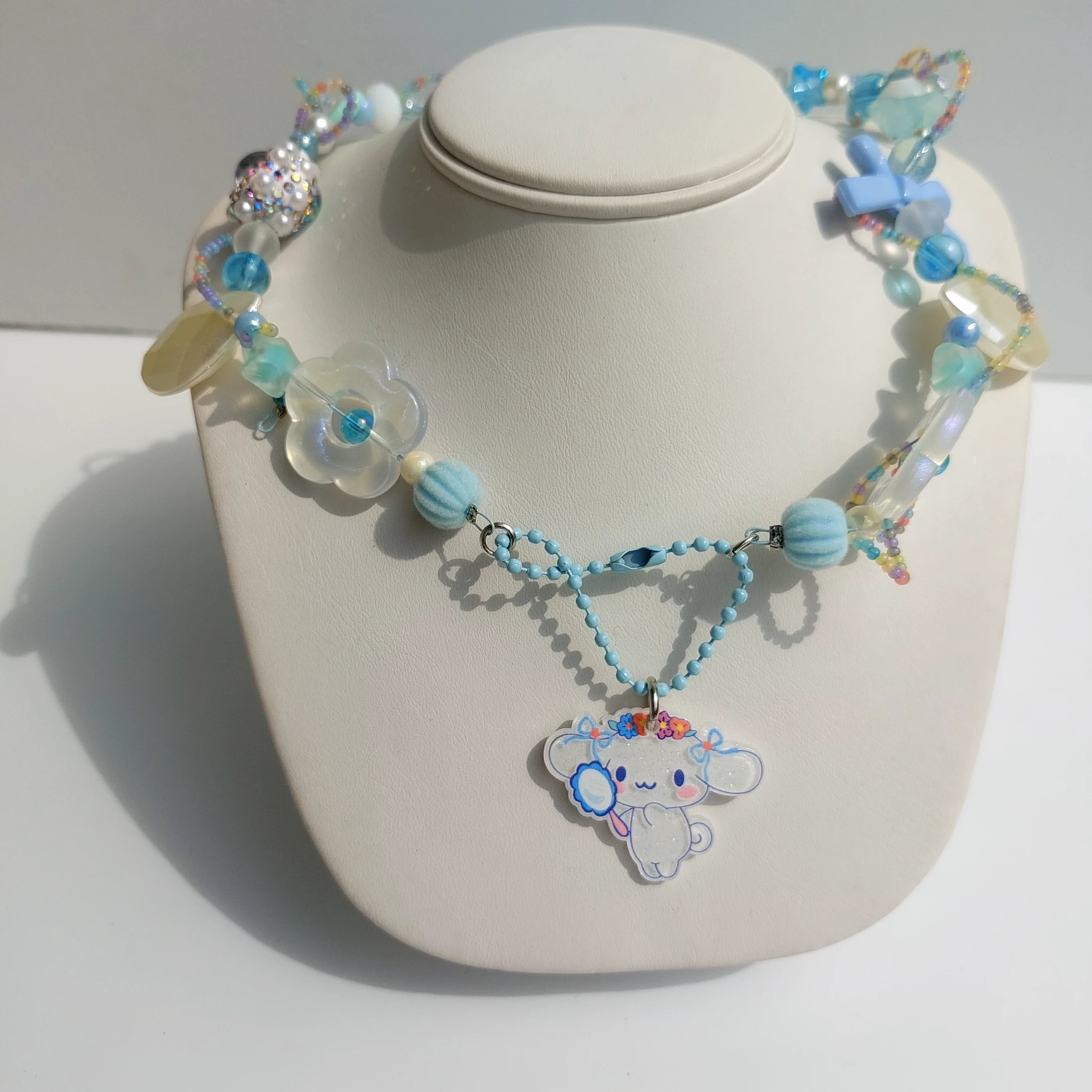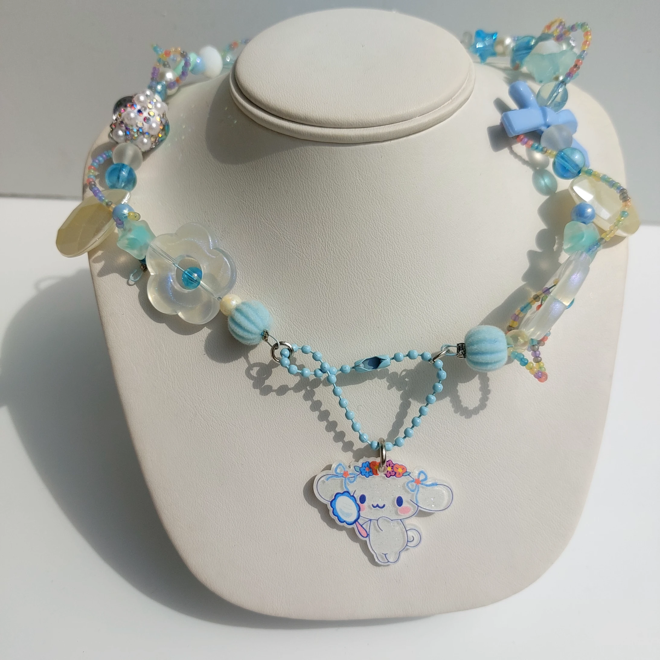 collarcito muy cute , realizado con mezcla de chaquira y acrílicos inspirados en cinnamoroll